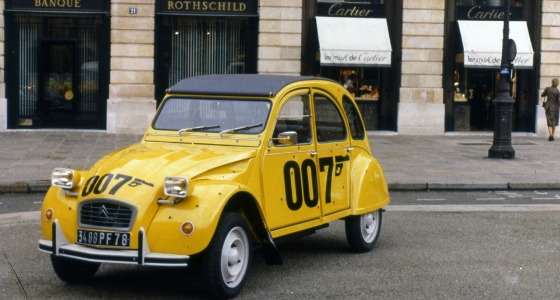 L’automobile et le cinéma ont toujours fait bon ménage. Surtout lorsque les constructeurs peuvent associer leurs modèles à une superproduction, d’une manière ou d’une autre. Le plus spectaculaire et récent exemple est bien sûr « Transformers, l’Âge de l’extinction ». Mais il y a plus de 30 ans, en 1981, les considérations marketing n’étaient pas aussi importantes, mais bien réelles, en témoigne l’implication de Citroën dans de grands succès populaires comme « Fantomas » et la saga « Le gendarme de Saint-Tropez ». Dans « Rien que pour vos yeux », Roger Moore et Carole Bouquet font une course poursuite en Espagne à bord d’une 2cv. Et si l’histoire du film raconte qu’il s’agissait d’une version Club renforcée par un moteur 4 cylindres. Un échappement spécifique fut ajouté afin de récréer la sonorité du 602 cm3 de 29 chevaux.